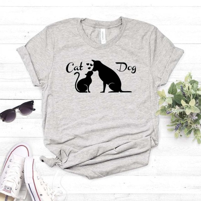 Cat & dog friendship t-shirt